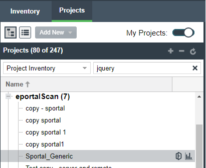 Open a project to manage it, assess scan results, and finalize its inventory (see Opening a Project).