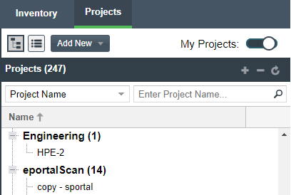 - Alternatively, open the project to view its inventory on the Project Inventory tab. See Opening a Project for details.