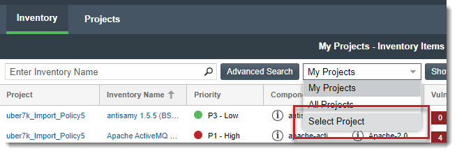 3. (Optional) To filter the view to a specific project, click Select Project to select a specific project.
